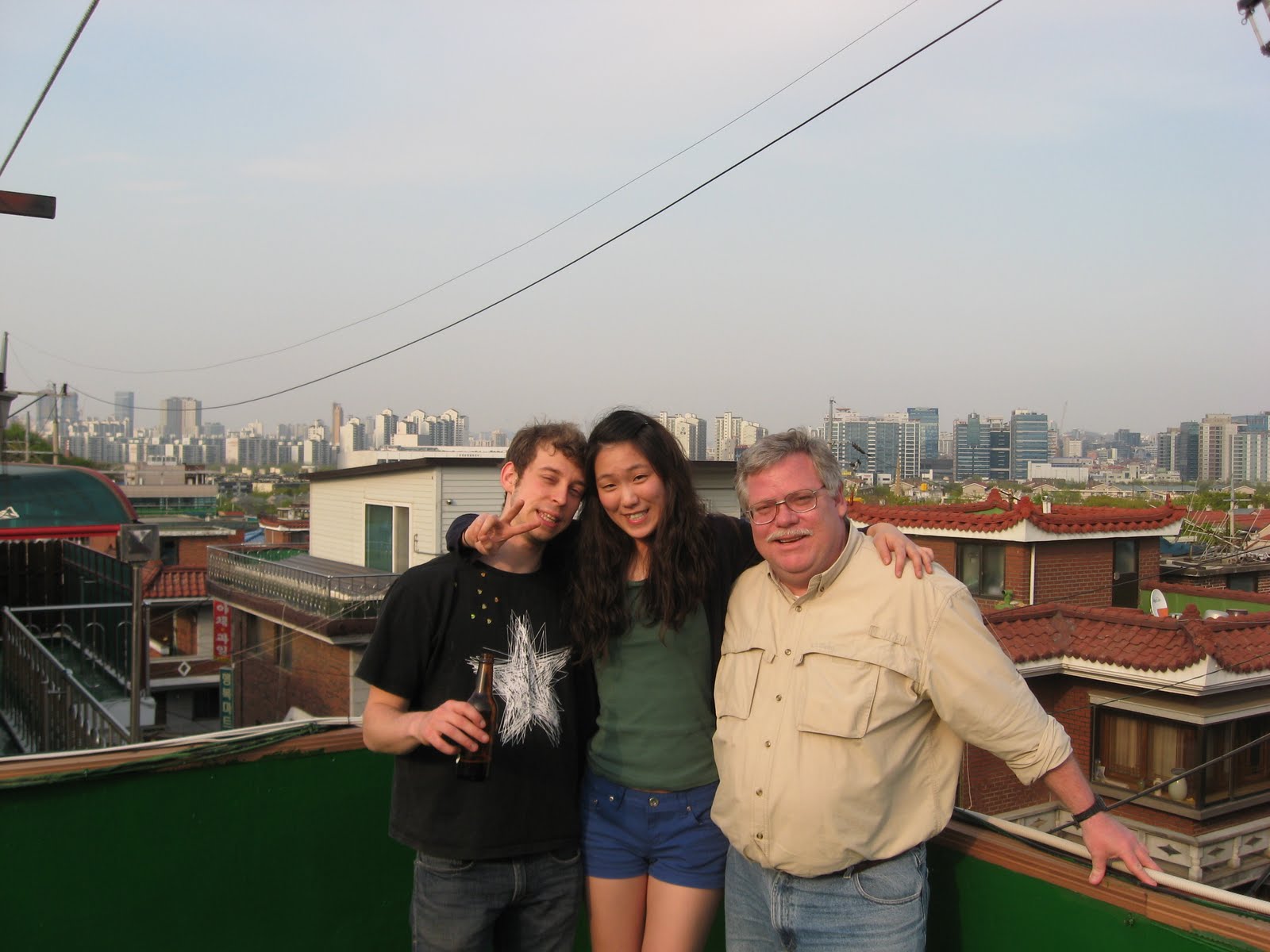 The location was a villa apparently owned by Nick's old hagwon, currently inhabited by some of his friends. Dude name of Galen, above with me and Jin fronting the awesome vista looking northeast, spun the tunes and did a great job. I knew it would be good when I walked up and they were chillin' to some some Hank Sr.
