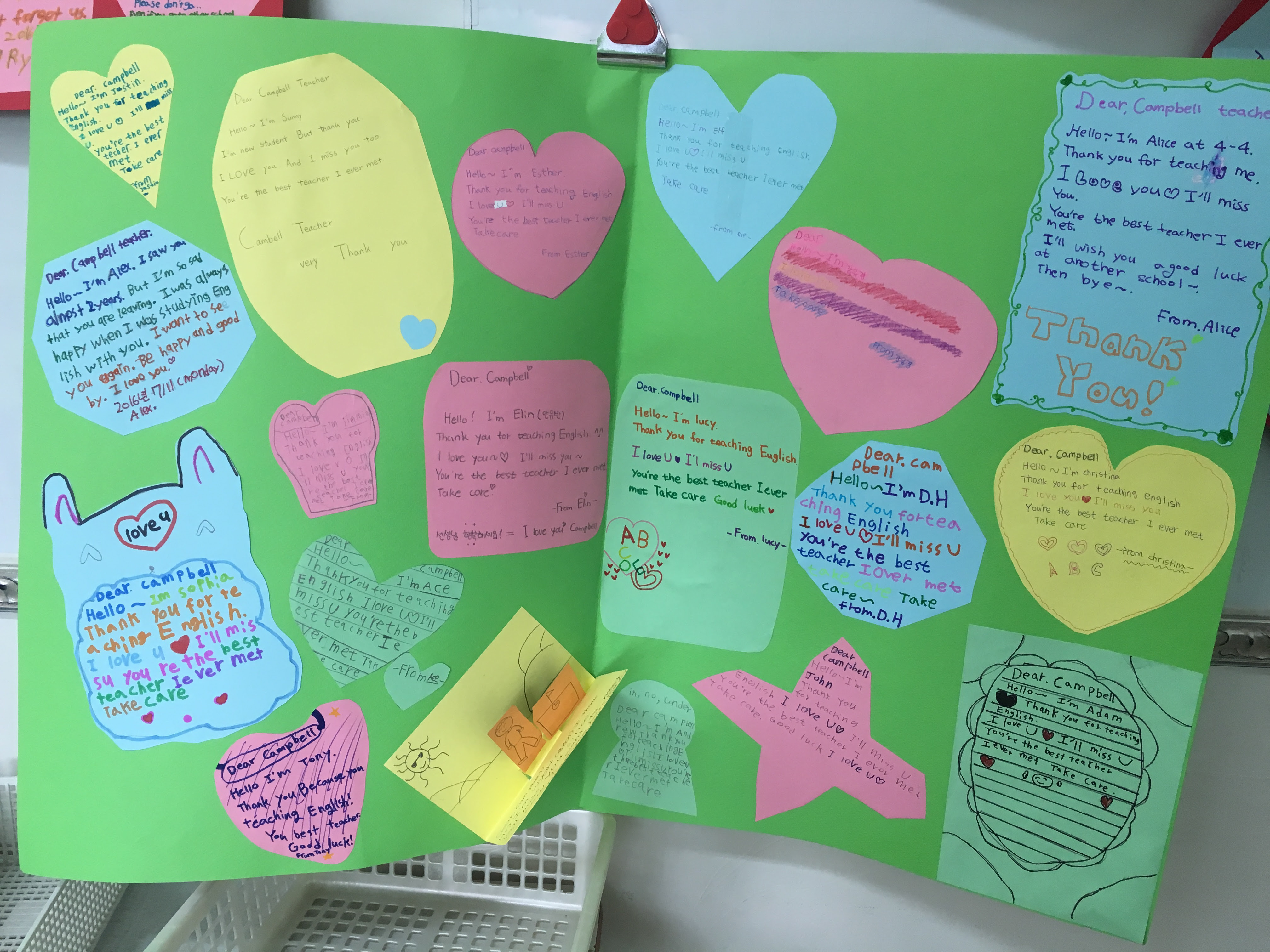 Full disclosure: My school has had a "Science Festival" every year, an event which I am totally in favor of, which led me to wish for an "English Festival". My new co-teacher Nicky, without my input, actually just did it, although it was less school-wide than classroom-wide. Though none of us knew it at the time, the event coincided with my "farewell" lesson. This was fortuitous, as it turned what could have been a dreary occasion into quite a lot of fun. You have already seen the gestures many students and classes made to thank me for teaching them during the last (up to) four years. I was moved by the genuine emotion many of them expressed. And we had s'mores!
